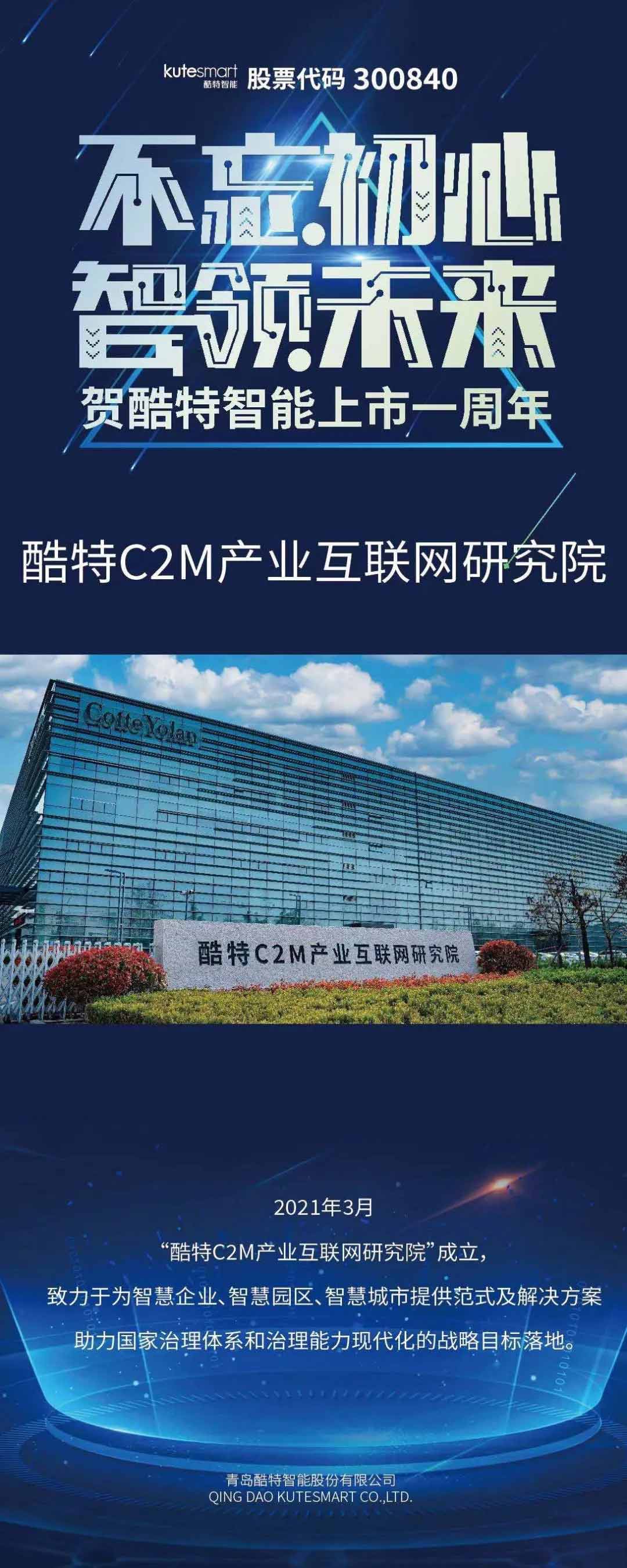 今天,是酷特智能上市一周年之日,回首過去一年時(shí)光,我們開拓創(chuàng)新,砥礪奮進(jìn),始終堅(jiān)持“成為有益于社會文明進(jìn)步的百年企業(yè)”的使命,堅(jiān)守“誠信、品質(zhì)、創(chuàng)新、服務(wù)”的經(jīng)營理念,面對上市后的新形勢和新挑戰(zhàn),酷特智能全面開啟以C2M產(chǎn)業(yè)互聯(lián)網(wǎng)生態(tài)為核心的新十年戰(zhàn)略,將用十年時(shí)間,向產(chǎn)業(yè)互聯(lián)網(wǎng)發(fā)起2.0版攻勢,全面呈現(xiàn)制造業(yè)未來的新形態(tài)。