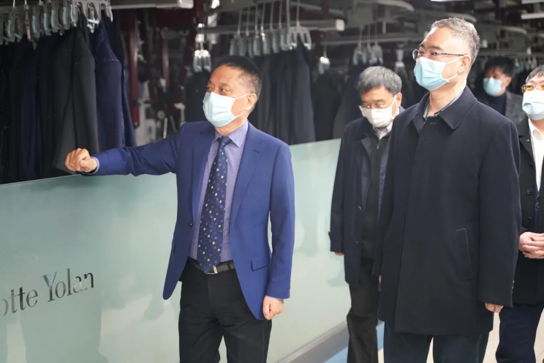 △王清憲(右)實(shí)地考察了酷特智能的生產(chǎn)車間
