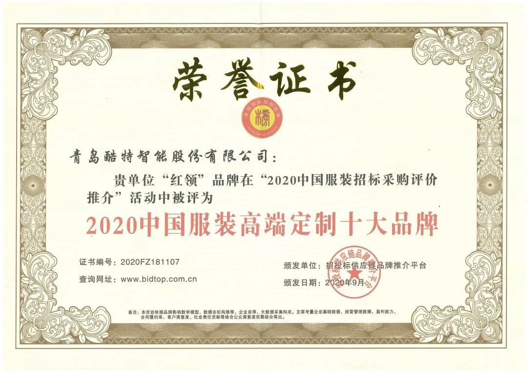 紅領品牌從眾多行業(yè)品牌中脫穎而出,斬獲「2020中國職業(yè)裝十大品牌」、「2020中國服裝高端定制十大品牌」兩項殊榮!