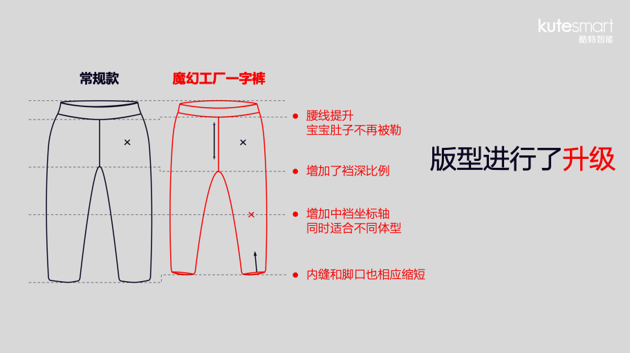 “所以,進(jìn)軍童裝市場,我們是做了充足的準(zhǔn)備的。”回歸產(chǎn)品本身,保證童褲的舒適性是重中之重。為此,魔幻工廠還專門設(shè)立了童褲研究所,推出輕定制童褲——一字褲,這是一種專為中國孩子定制的童褲版型,而一字(Easy)代表著舒適和自由。